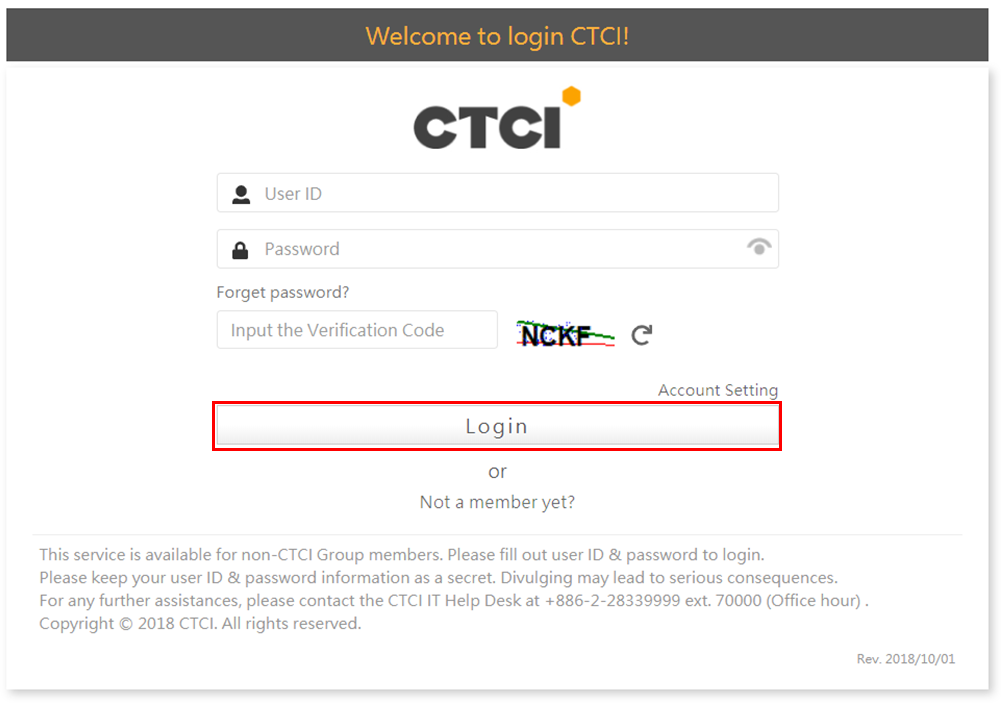 Step1. After fill out your “User ID” and “Password”and “Verifiction Code”, click “Login”to start signing in.