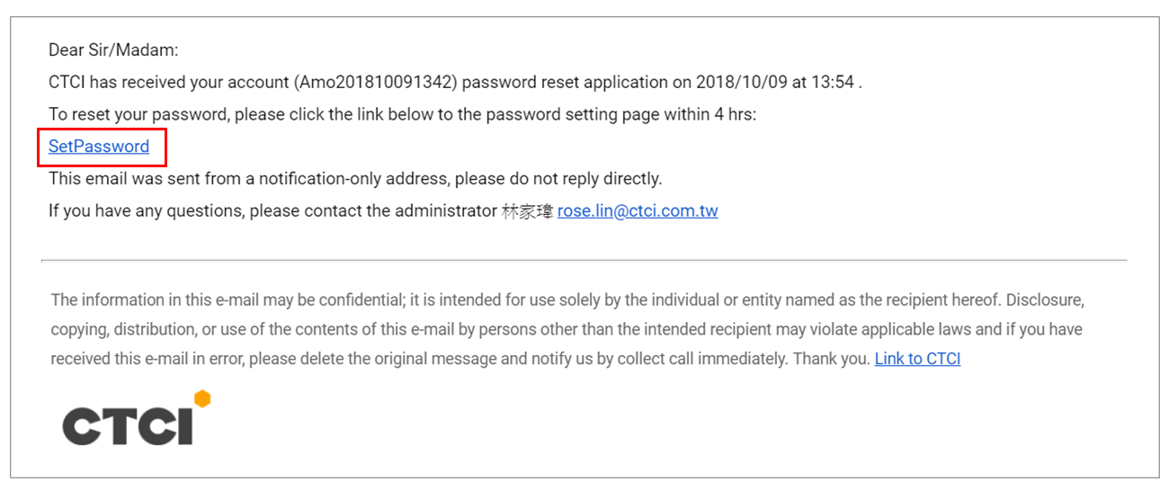 Step3. Go to your registration mailbox to check for email. Within the email, click the hyperlink “SetPassword”